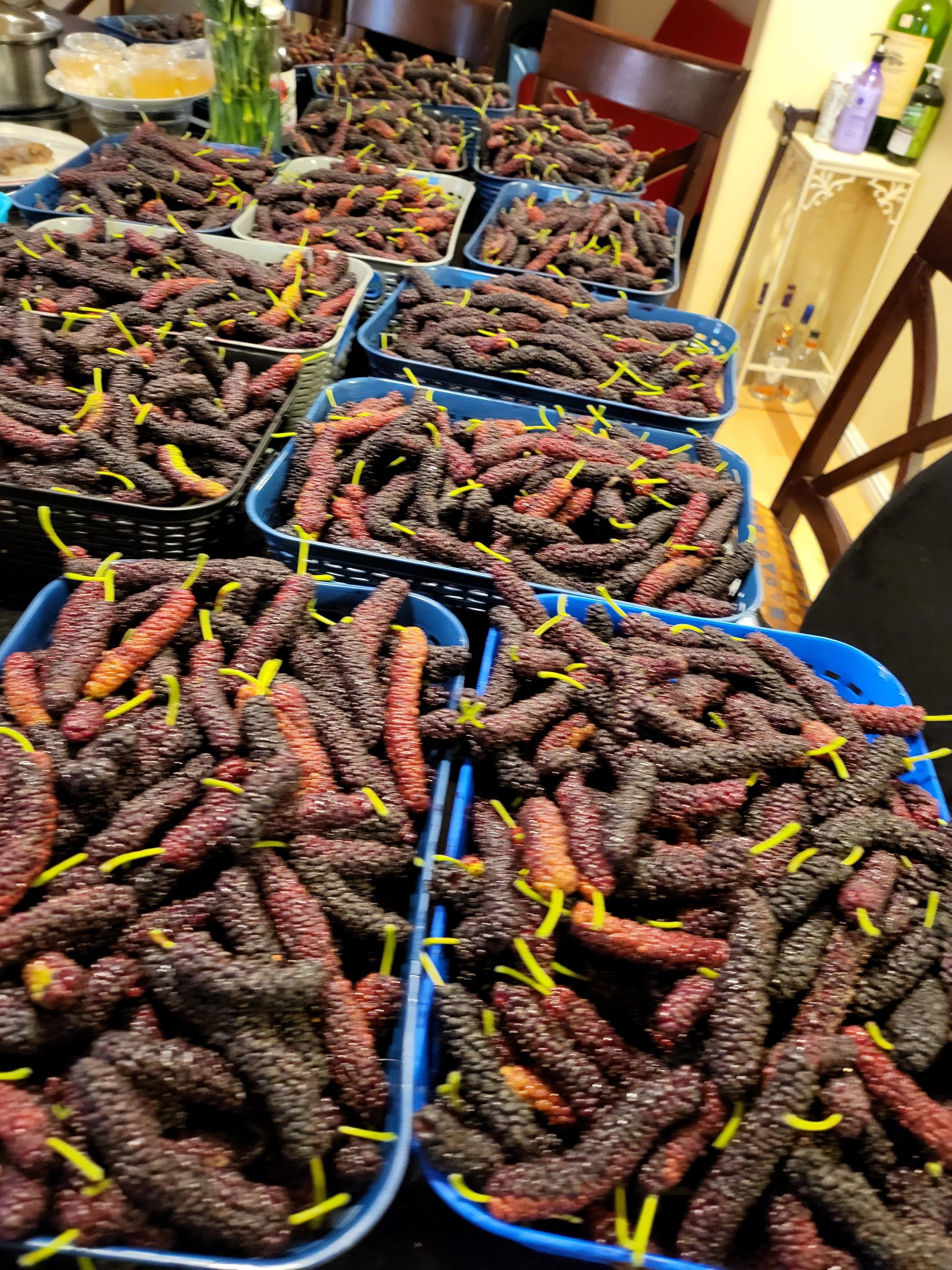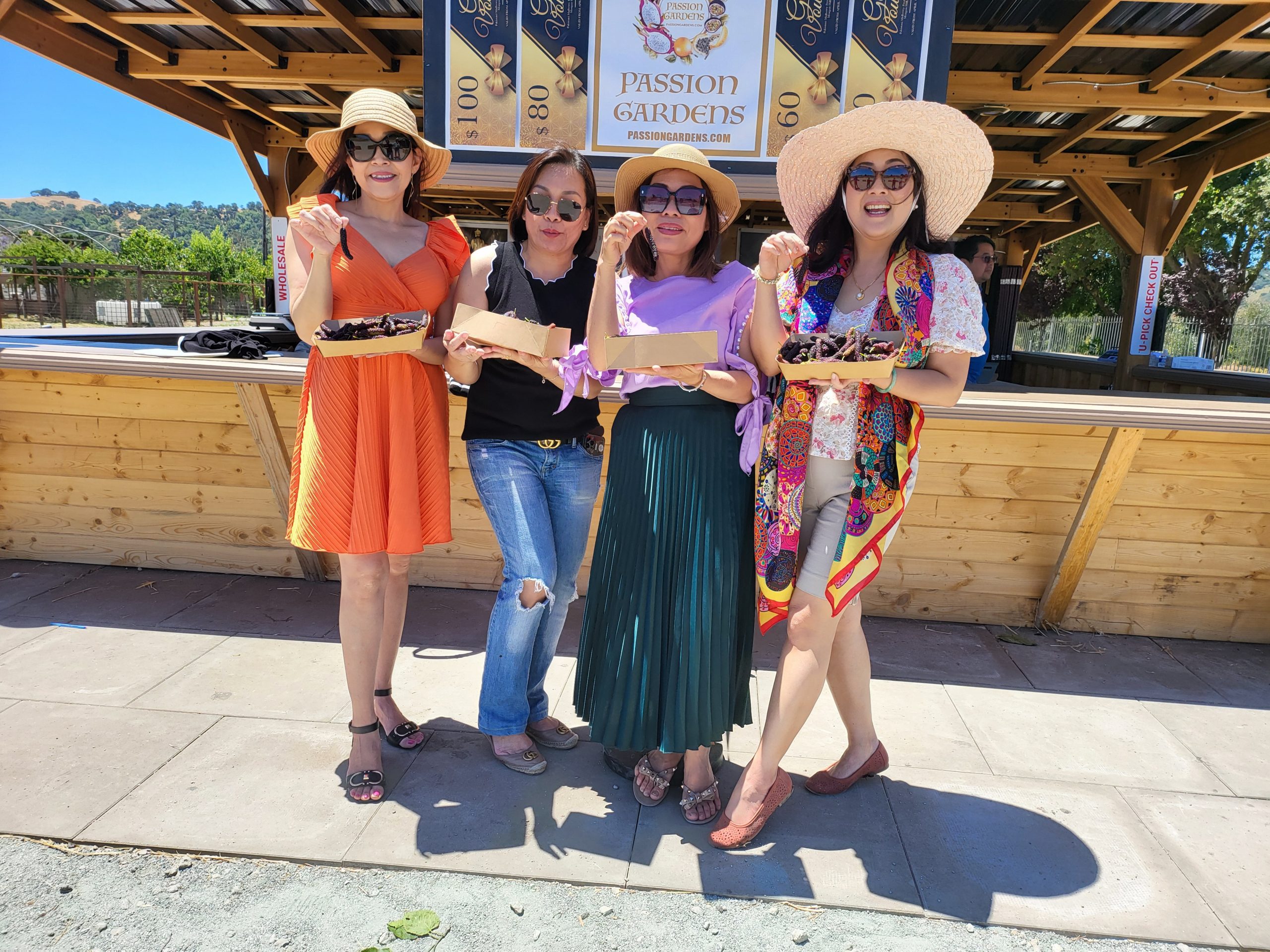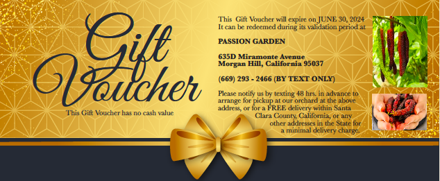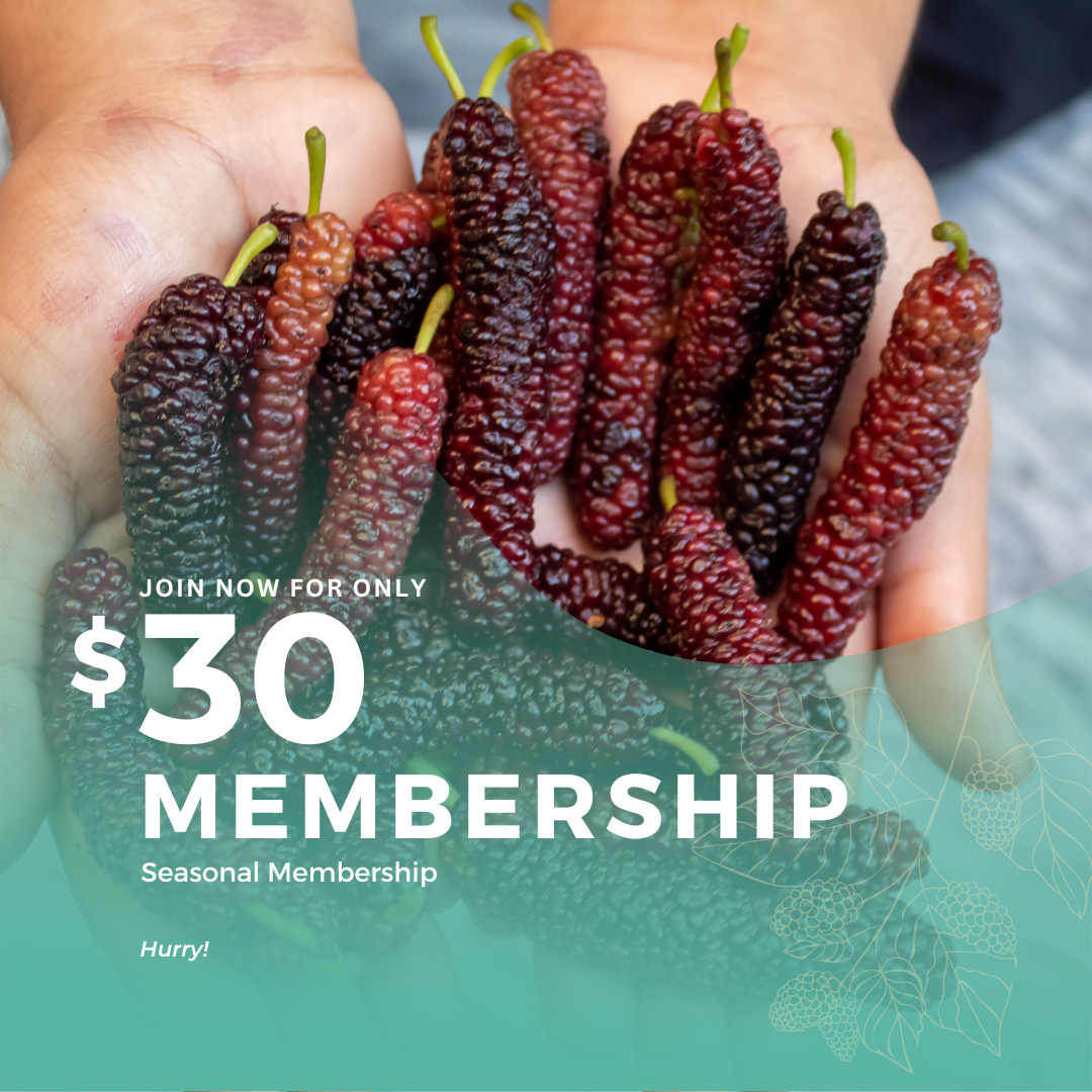 In addition to the exclusive right to self-picking at our Gardens by our Members, our Pakistan Mulberries can be purchased online, or BEST by texting us at (669) 293- 2466 to set up an appointment for pick-up at PASSION GARDENS (We will reply to text only). Â